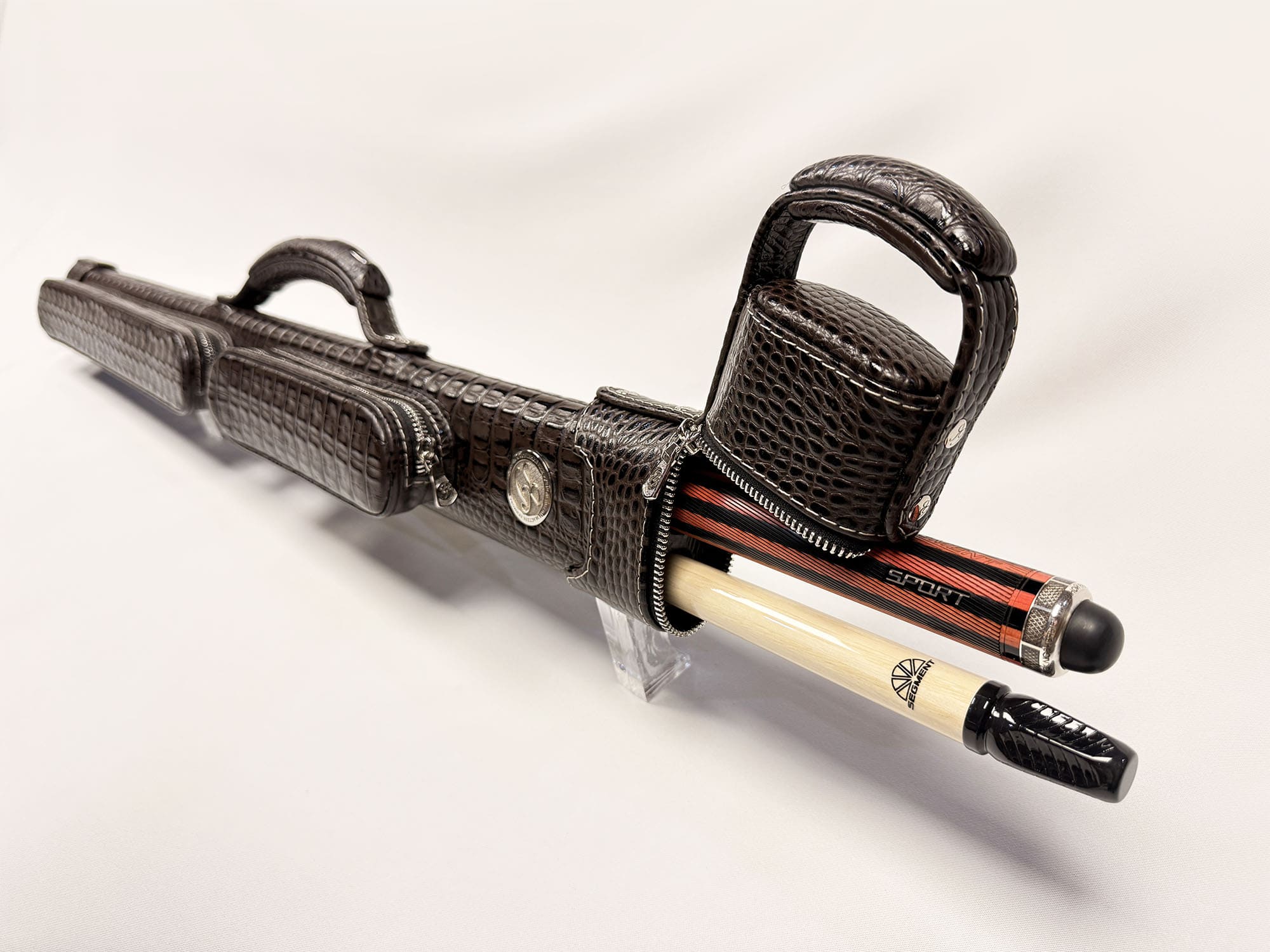 Авторский тубус из натуральной тисненой кожи, выполненный по параметрам этого кия, обеспечивает его непревзойденную защиту и является наилучшим способом переноса и хранения