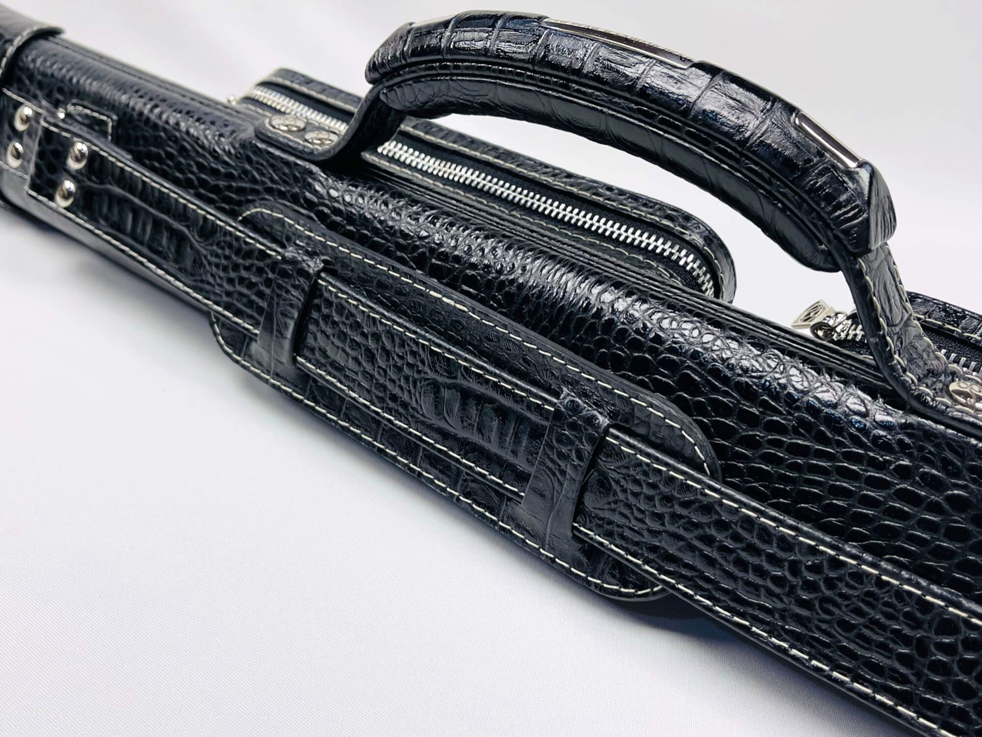 • Авторский тубус для двухсоставного кия с доп шафтом изготовлен из легкого и прочного пластика и натуральной тисненой кожи снаружи