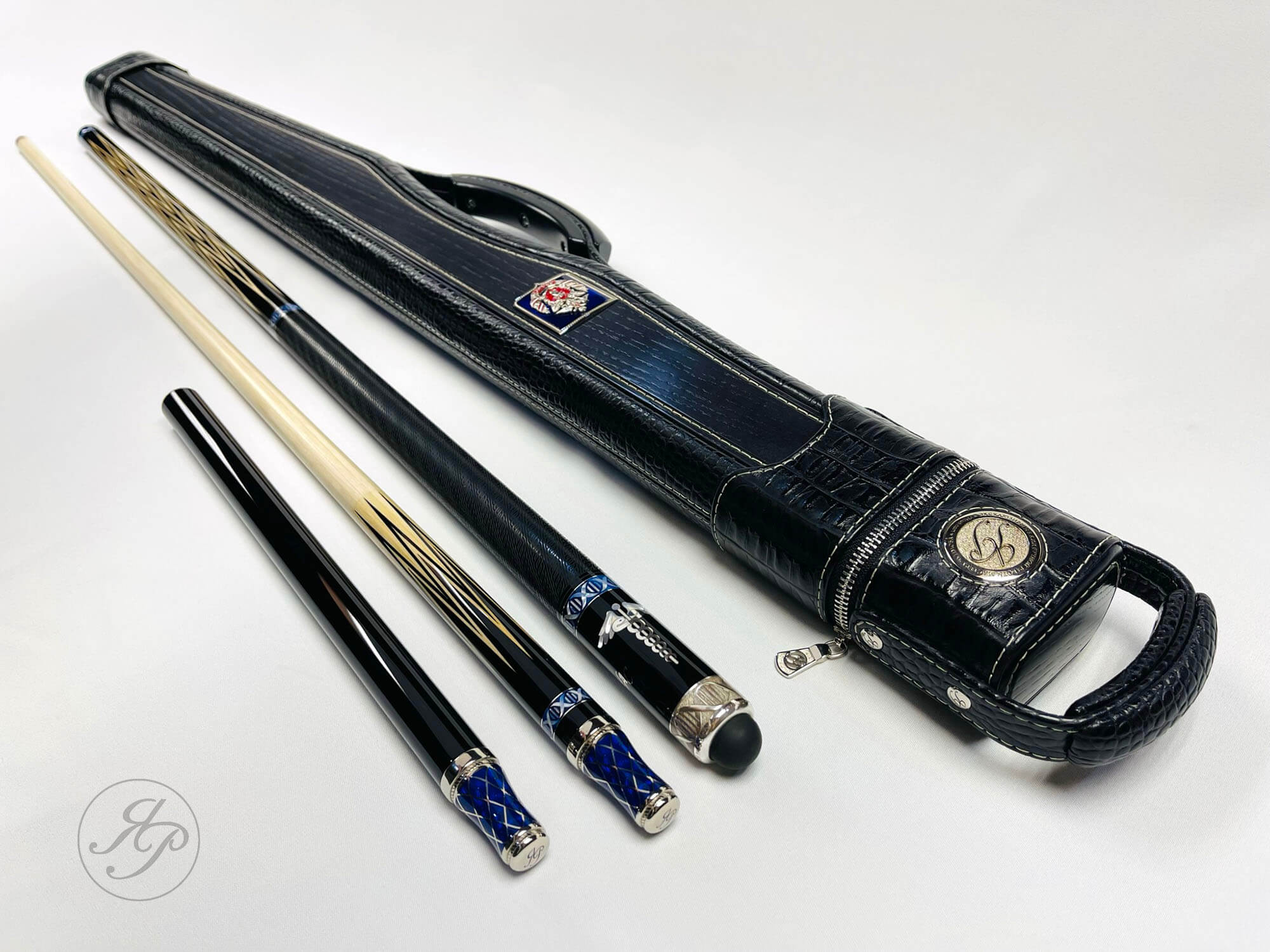 • Авторский тубус для двухсоставного кия изготовлен из легкого и прочного пластика в основании и массива ясеня и натуральной тисненой кожи снаружи