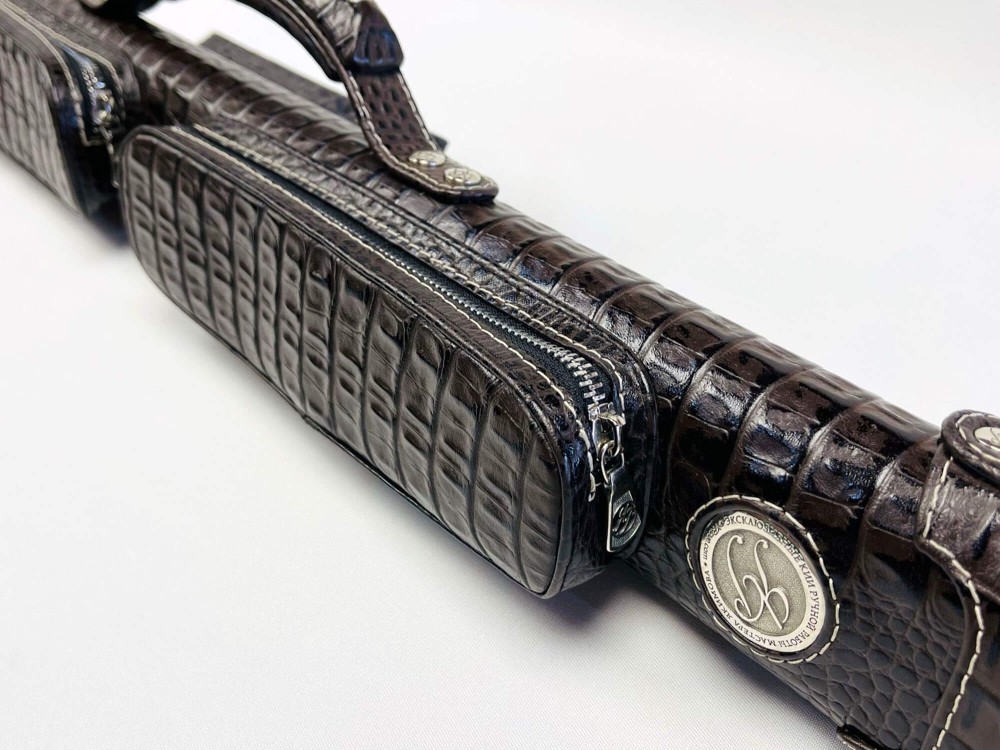 • Авторский тубус для двухсоставного кия изготовлен из легкого и прочного пластика в основании и натуральной тисненой кожи снаружи
