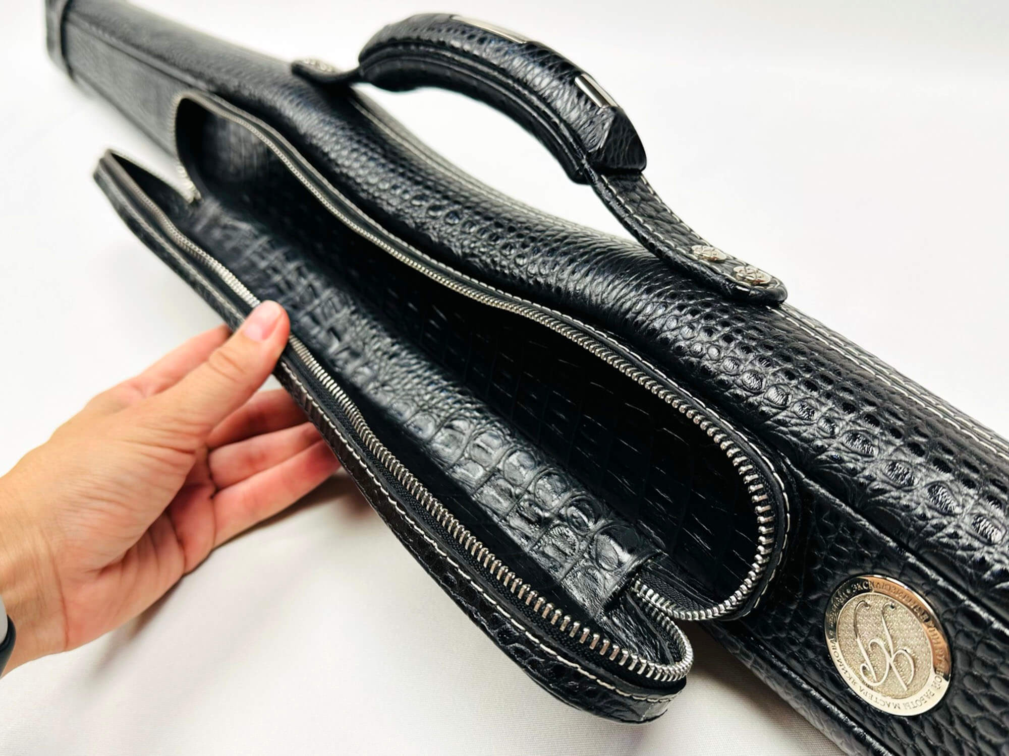• Авторский тубус для двухсоставного кия изготовлен из легкого и прочного пластика в основании и натуральной тисненой кожи снаружи