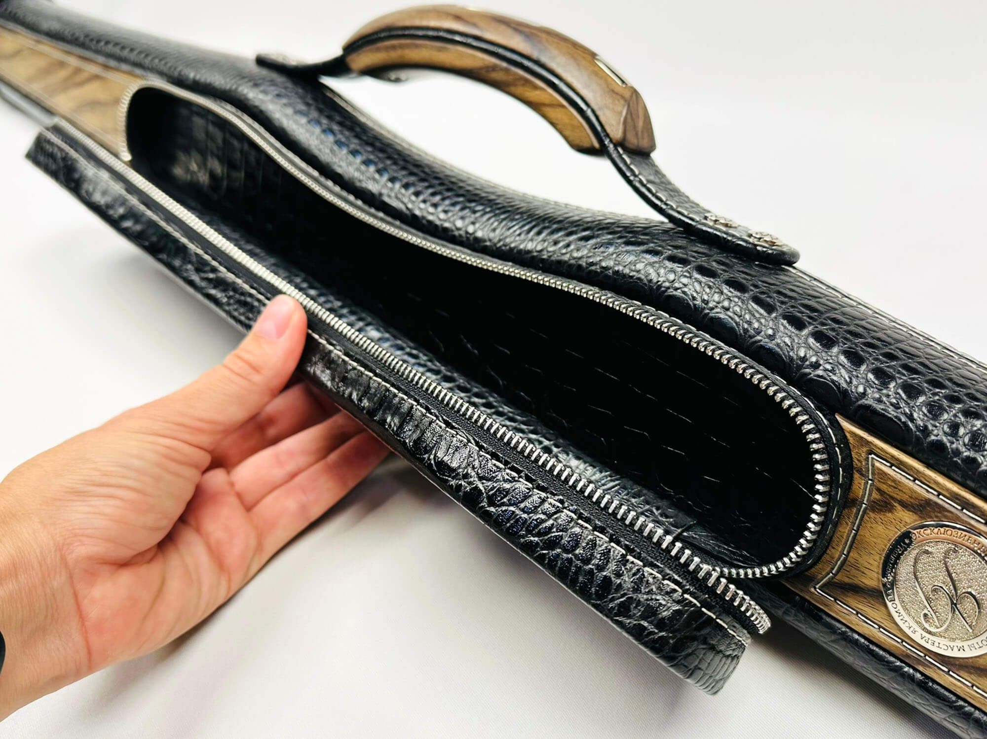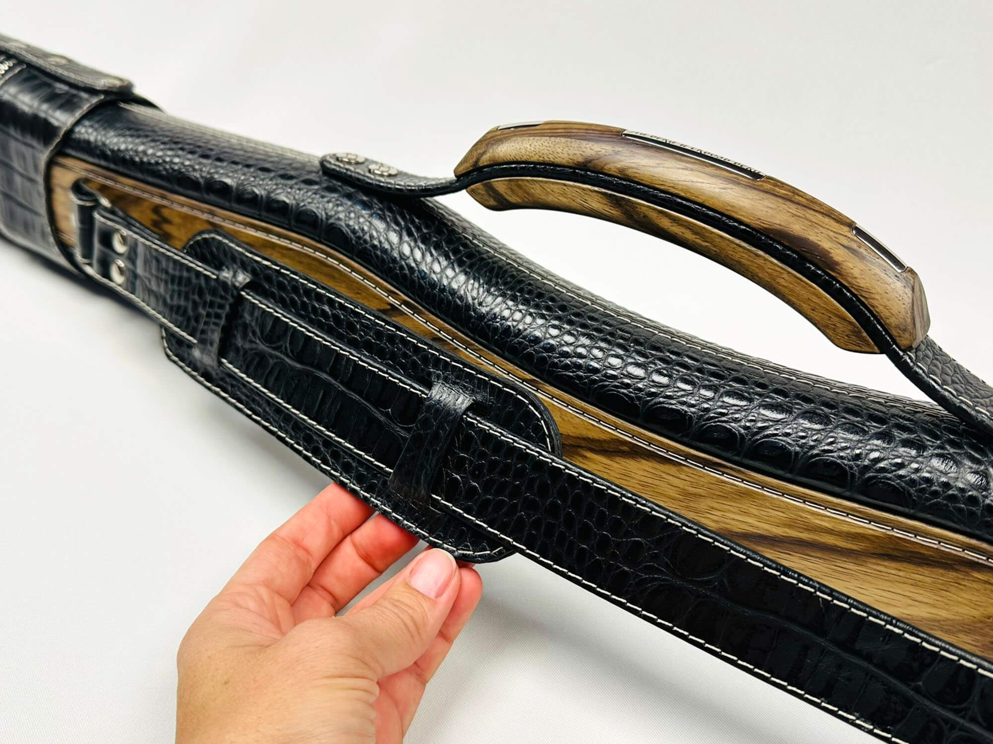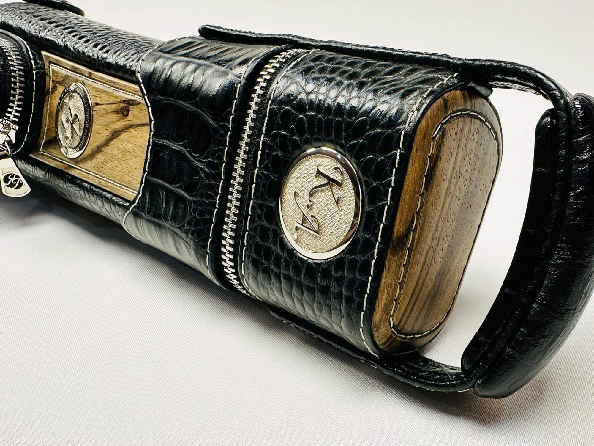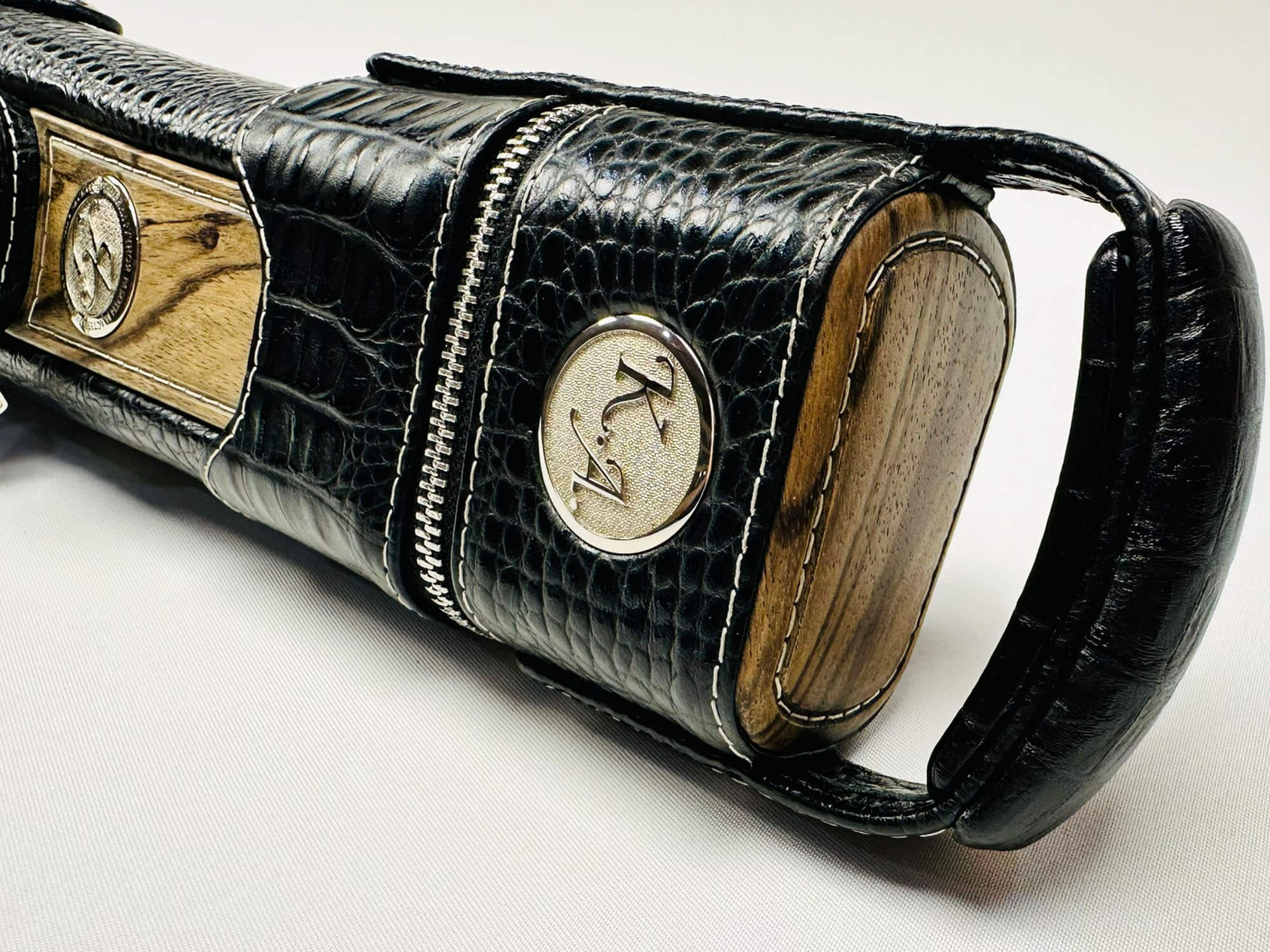 • Авторский тубус для двухсоставного кия изготовлен из легкого и прочного пластика в основании и натуральной тисненой кожи и массива зебрано снаружи