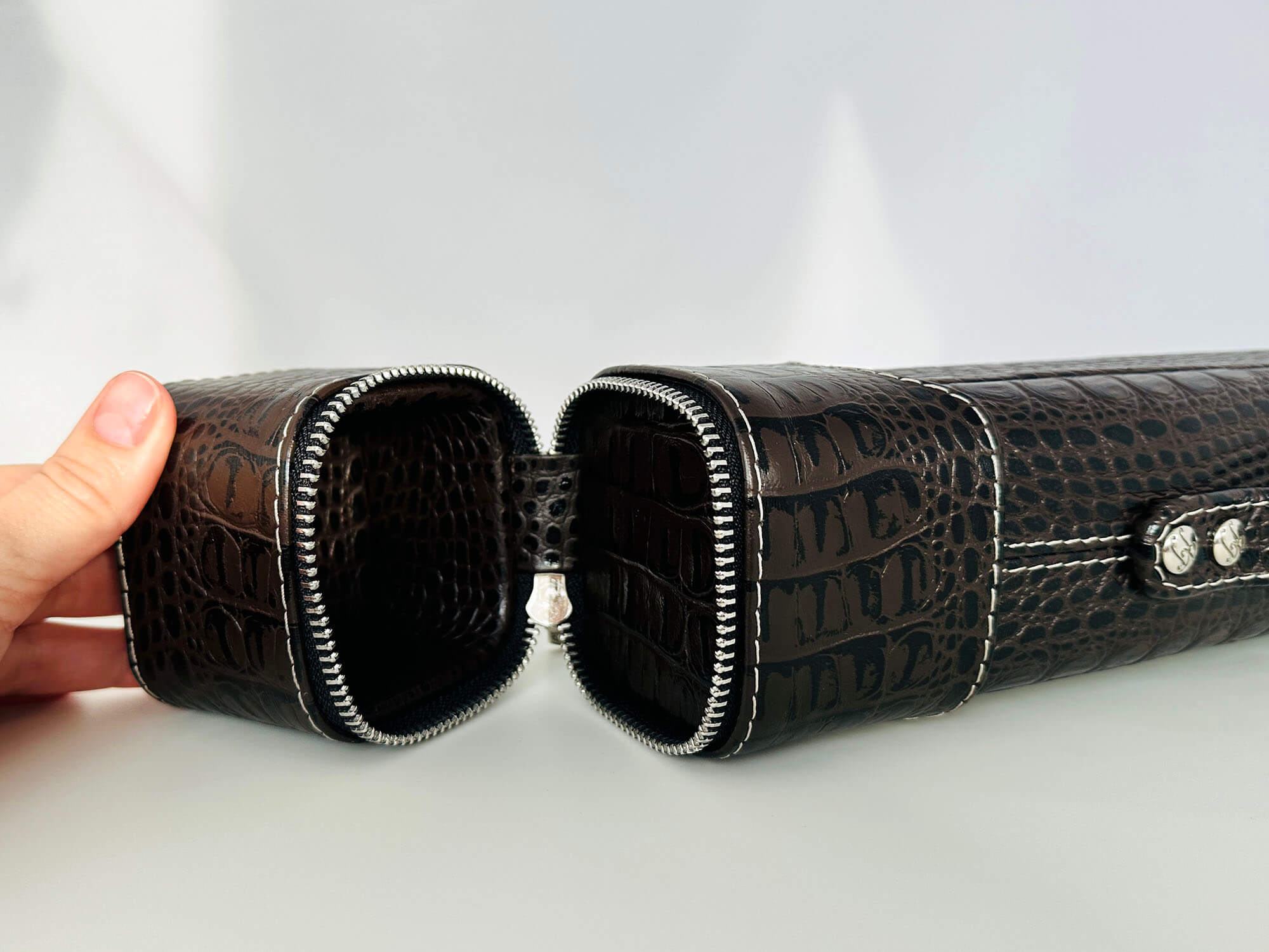 • Авторский тубус для 4-х составного кия изготовлен из легкого и прочного пластика в основании и натуральной тисненой кожи снаружи