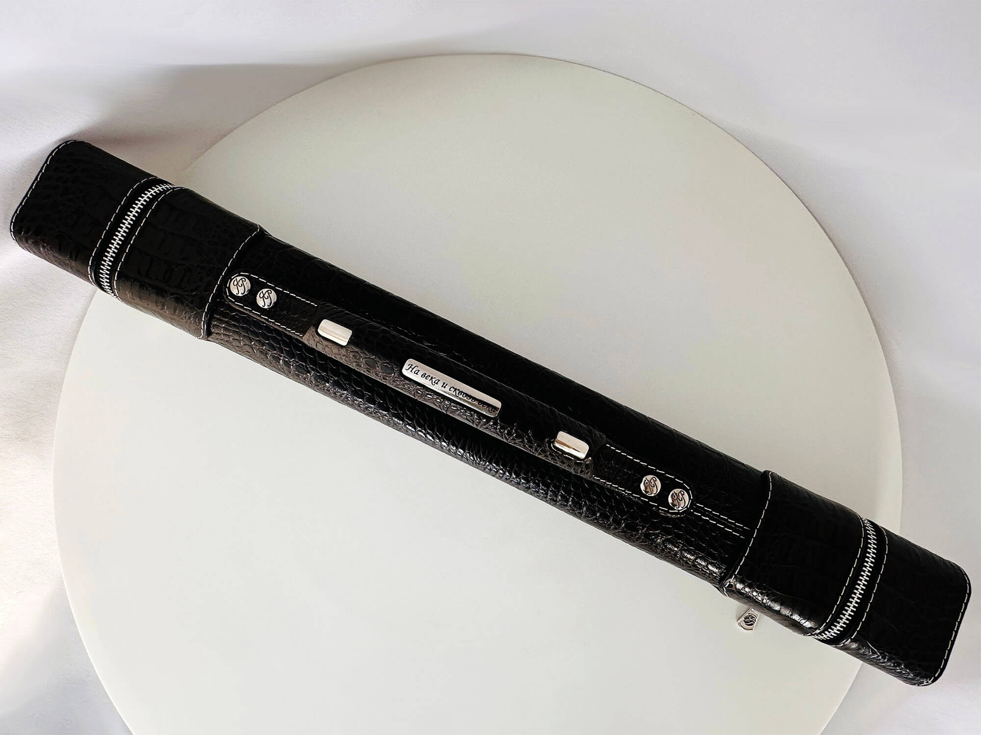 • Логотип мастера и вся фурнитура на тубусе разработаны и изготовлены в нашей мастерской.