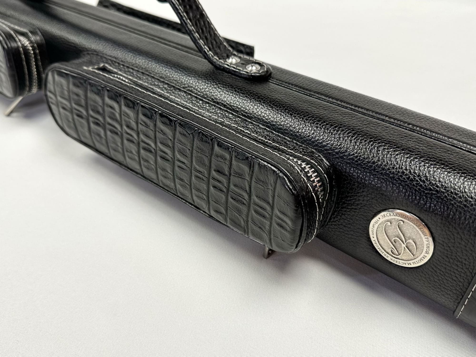 • Авторский тубус для 2-х двухсоставных киев изготовлен из легкого и прочного пластика в основании и натуральной тисненой и гладкой кожи снаружи
