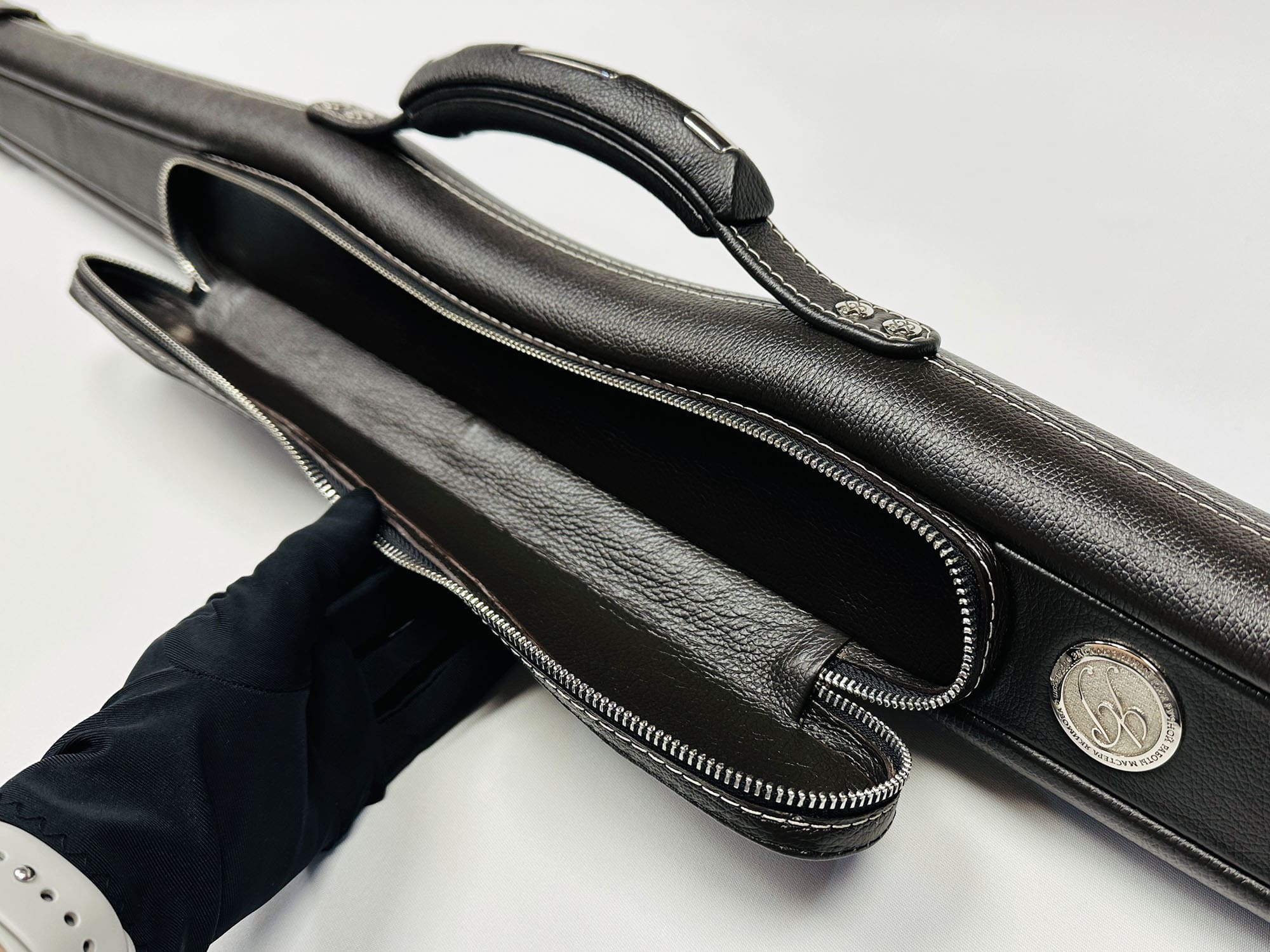 • Авторский тубус для 2-х ставного кия изготовлен из легкого и прочного пластика в основании и натуральной гладкой кожи снаружи
